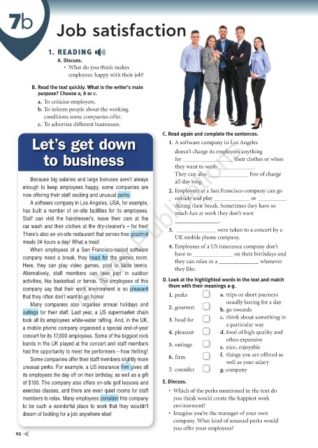 activities, like basketball or tennis. The employees of this D. Look at the highlighted words in the text and match
